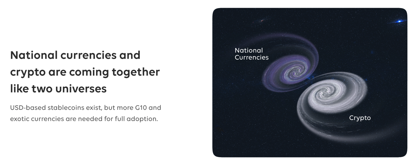화폐 없이는 은행이 생길 수 없고, 거래소나 파생상품도 생겨날 수 없습니다. 스테이블코인, 그것도 미국 달러 가격을 1:1로 추종하는 스테이블코인뿐만 아니라 우리나라 원화, 중국 위안화, 일본 엔화, 유로화 등 전세계 화폐와 가격이 고정된 다양한 외환 기반 스테이블코인들이 블록체인에 온전히 제공될 때 비로소 그 위에 의미있는 DeFi(블록체인 기반 금융 앱) 생태계가 꽃필 수 있을 것입니다.