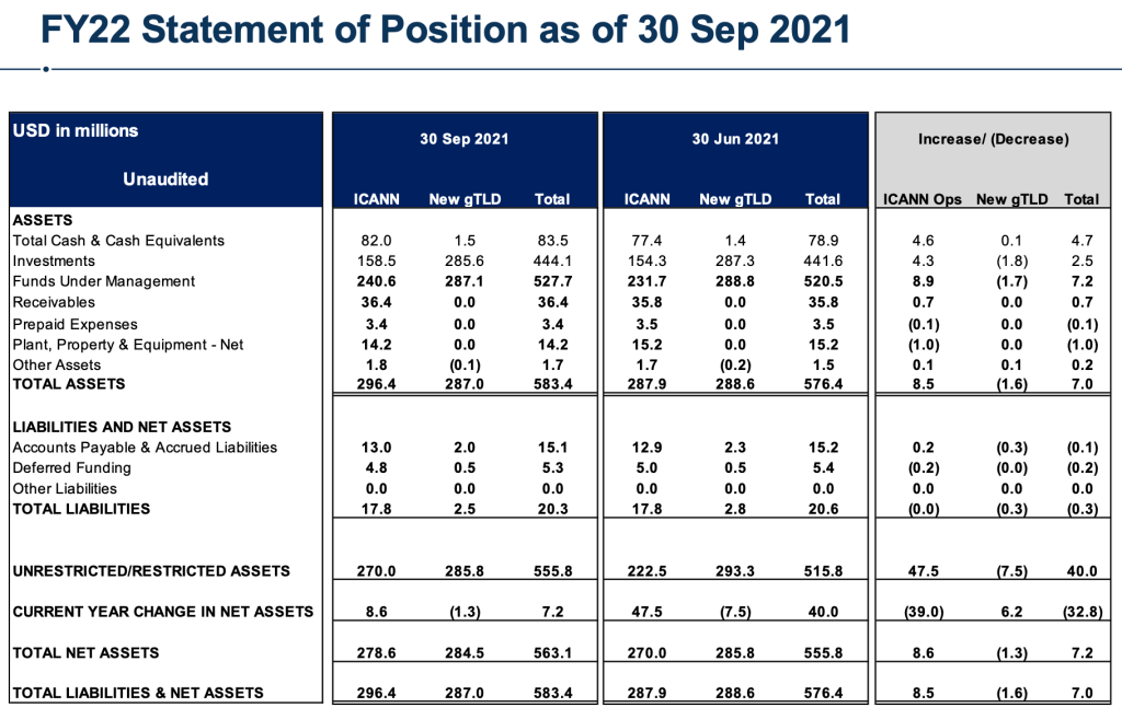 ICANN은 친절히 재무자료를 공개하고 있는데, 그렇게 사람들이 존재 자체를 모른채 지난 20년간 도메인 정책을 운영해 현재 6,900억 정도 되는 자산을 보유하고 있다. (올해 수수료 매출은 400억원)