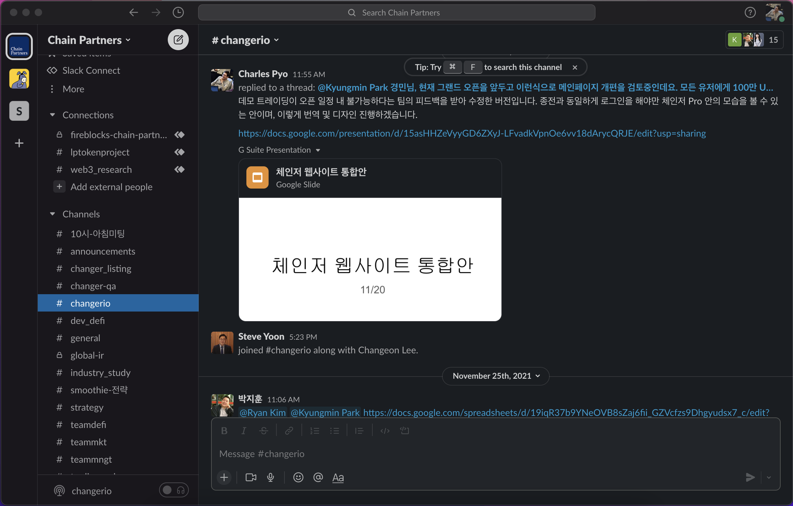 또한 체인파트너스에는 5년간 쌓인 비즈니스 아카이브가 있습니다. 거의 블록체인으로 안해본 일이 없는 회사이기 때문에, 필요할 때 과거의 고민과 답들을 꺼내어 볼 수도 있습니다.