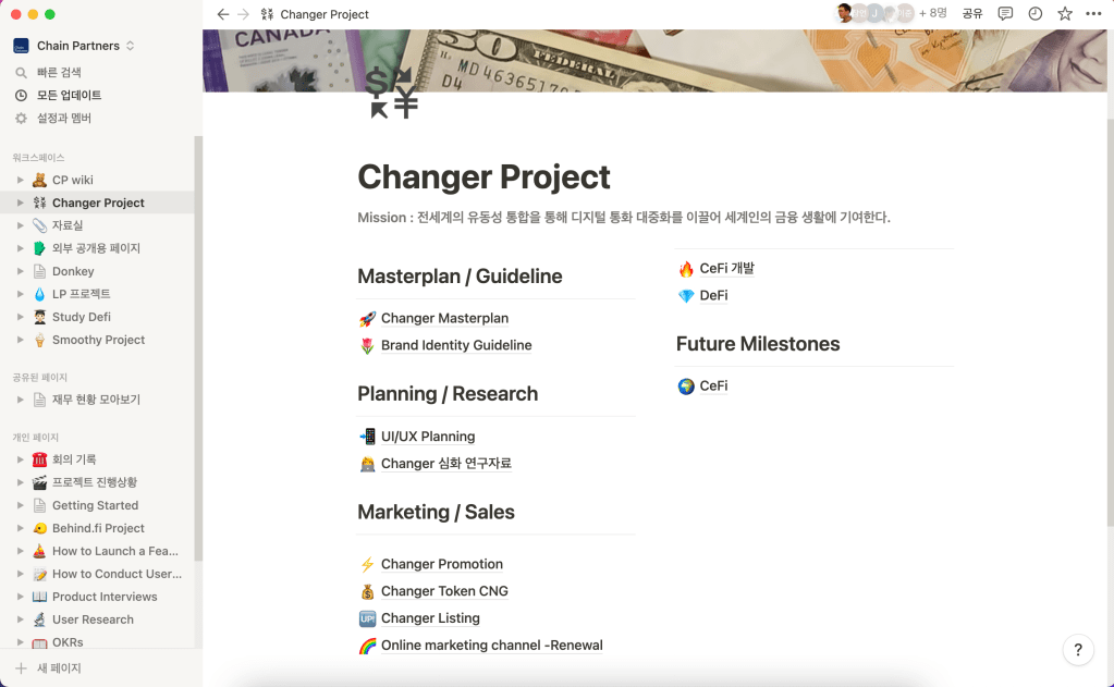 체인저 제품의 UI 디자인과 CI 디자인을 맡아 전세계가 보는 Web3 제품을 만들어 갑니다. 블록체인, 크립토, Web3, 핀테크 서비스의 디자인에 관심이 있으시면 재미있게 일하실 수 있습니다.