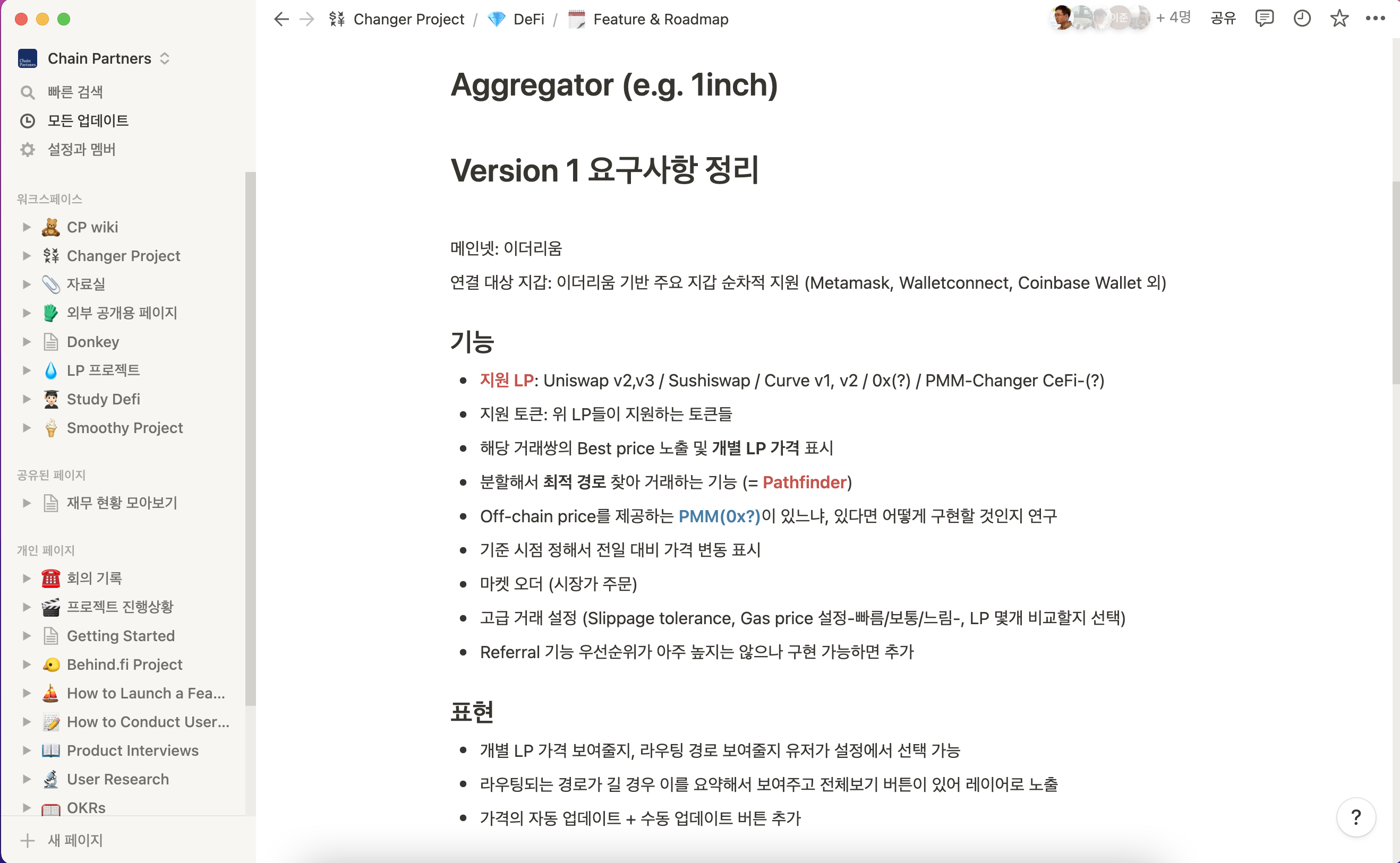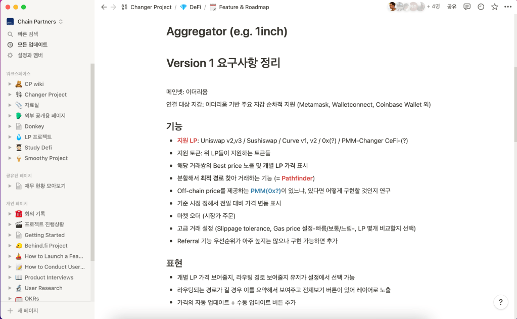 원격 근무 효율성의 핵심은 ‘서로 같은 말을 하고 있는가‘입니다. 이를 위해 회의로 합의된 내용과 제품의 계획은 Notion에 기록해두고, 모두가 같은 제품을 상상하며 이를 구현해 낼 수 있도록 하고 있습니다.