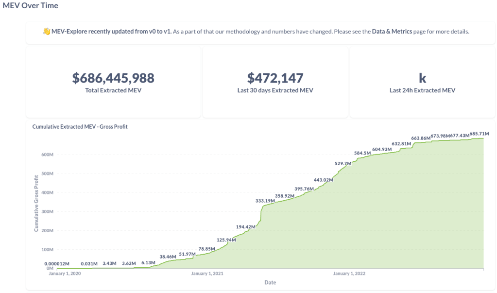 이더리움은 블록 생성 주기가 10~15초이기 때문에 그 사이에 일어난 거래는 일종의 거래 대기소(Mempool)에 모여 다음 채굴자가 거래를 검증(채굴)해주기를 기다리게 된다. 이 기다리는 동안 어느 사용자가 어떤 거래를 시도하는지는 대기소를 들여다보면 누구나 알 수 있다. 이 점을 악용해 일종의 선행매매(Front-running)를 함으로써 사용자가 깨닫지 못하는 손해를 끼칠 수 있는데, 이같은 일련의 부정행위를 Web3 업계에서는 MEV(Maximal Extracable Value)라 부르고 있다.