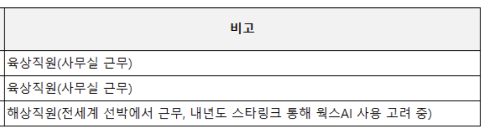 다양한 고객이 웍스AI를 쓰는데 이따금 굉장히 재미있는 유즈 케이스가 있다. 이 대형 해운사는 내년 1월 1일부터 전세계 선박에서 스타링크를 통해 웍스AI를 사용하기로 하고 같이 준비중이다. 그런 모습을 상상만 해도 재미있고 신기하고 나중에 우리 홍보 영상 같은데에서 육해공으로 웍스를 쓰는 모습을 보여주어도 참으로 재미있겠다 싶다.