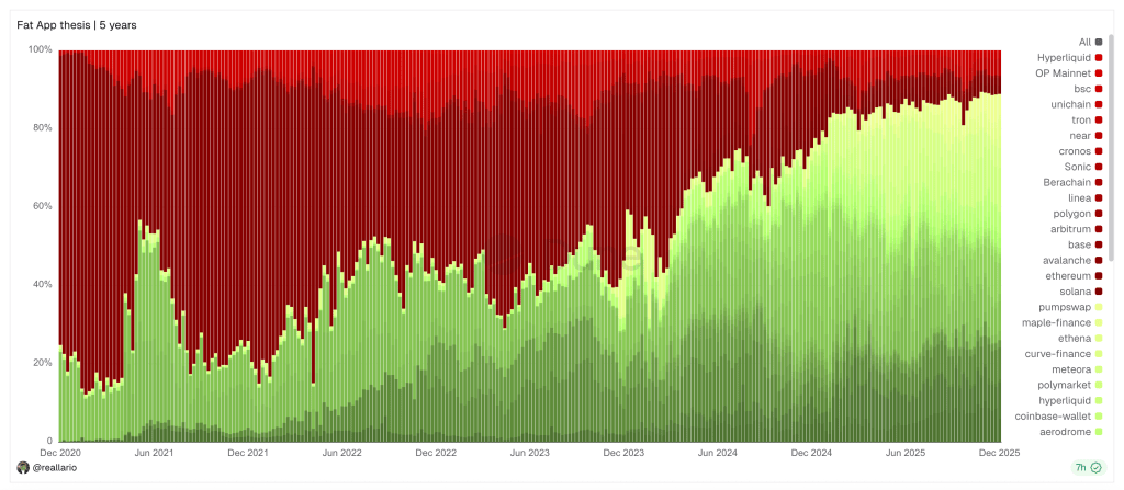 Fat protocol thesis 등장 8년 반이 지난 지금 보면 결국 전통적인 인터넷처럼 App이 Protocol을 이겼다. Gen AI에서도 나는 앱이 모델을 이길거라고 본다. (물론 모델 덕에 기존엔 불가능했던 앱이 가능해지는 것도 분명하다. 따라서 상보적이다.) 사람들이 일단 앱을 통해 모델을 만나기 때문이다. 블록체인에서도 사람들은 앱을 통해 프로토콜을 만났다. 좋은 앱이 있으면 그 앱이 선택한 프로토콜을 유저가 사용하게 된다.